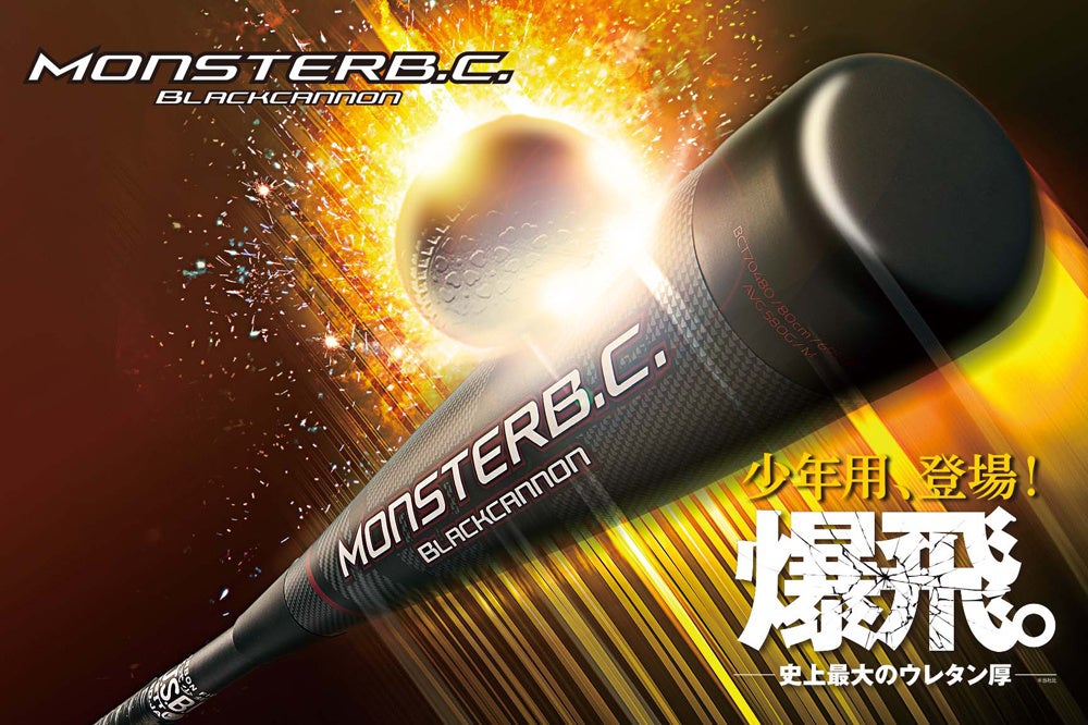 【モンスターブラックキャノン】が、少年軟式プレーヤーの⾶び切りの豪打を提供します。