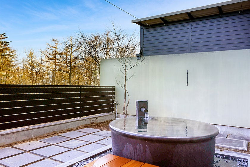 1室を除き全室バルコニー付きで陽の光や風、樹々のざわめきや鳥の声を身近に感じることができる点が【TAOYA日光霧降】の客室の魅力ですが、露天風呂付客室では湯に浸かりながらこれらの自然を身近に感じるという、贅沢な時間をお過ごしいただけます。