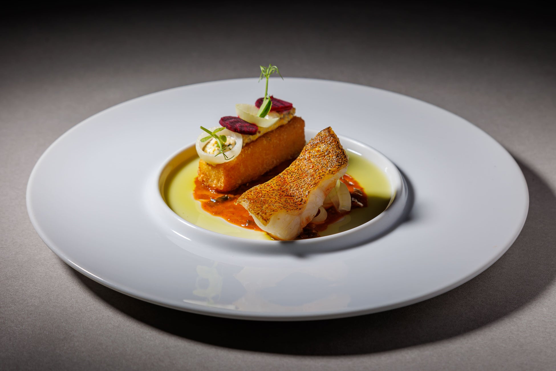 ■ノルウェーサーモンのミ・キュイ 赤ワインソース