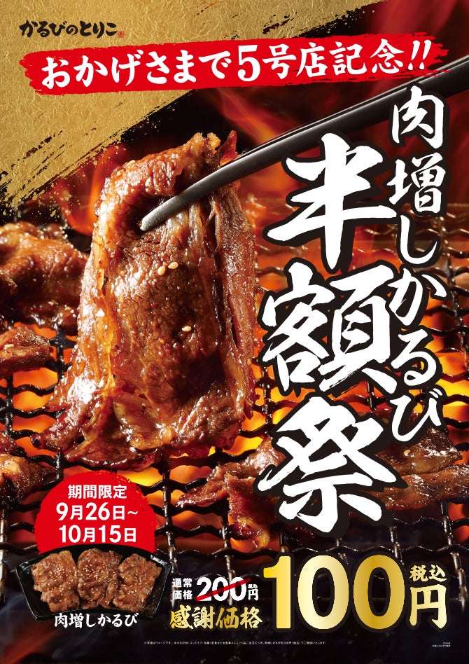 -5号店開店を記念し「肉増しかるび半額祭」を本日より開催-