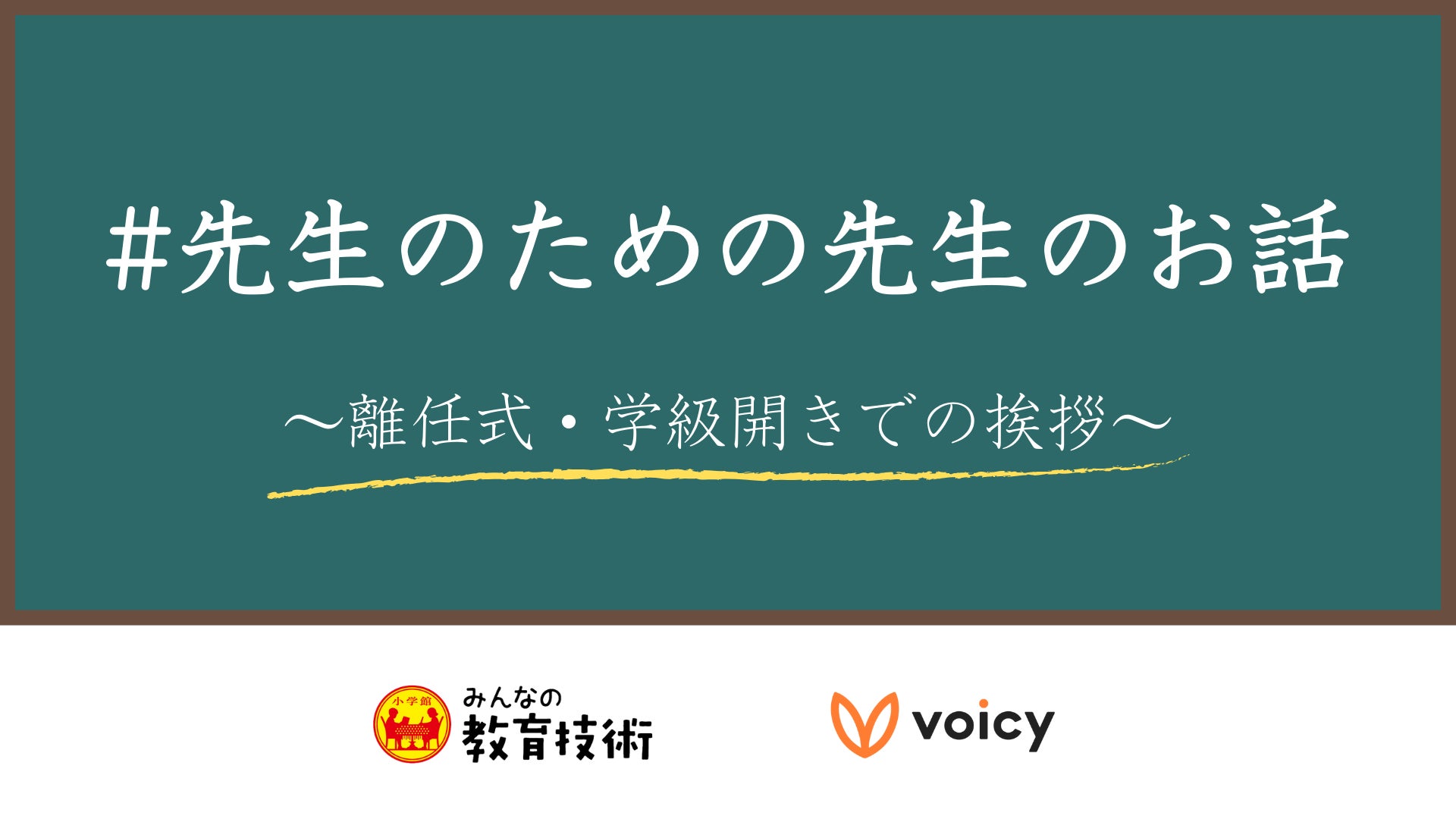 第一弾となる今回の企画は、「春の挨拶」編として、3月・4月の卒業・入学シーズンに小学校教員が気になるテーマ「離任式・学級開きでの挨拶」を取り上げます。実際に声で挨拶を聴くことで、どんな声や雰囲気で話しているのかを掴むことができます。「みんなの教育技術」でも、挨拶内容の書き起こしやポイント解説をお楽しみいただけます。