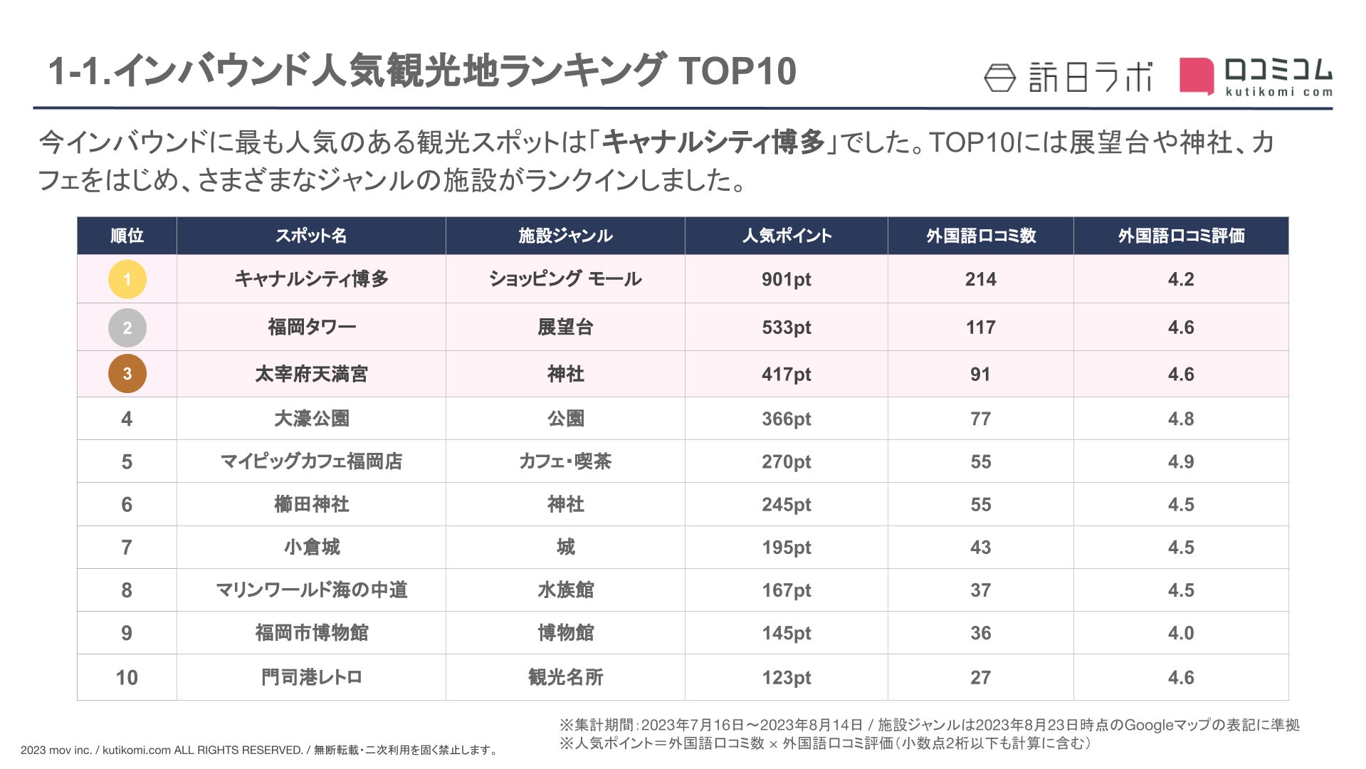【独自調査】インバウンド人気観光地ランキング福岡編:コロナ後 最新の訪日客の支持を集めたスポットTOP10を発表 #インバウンドMEO