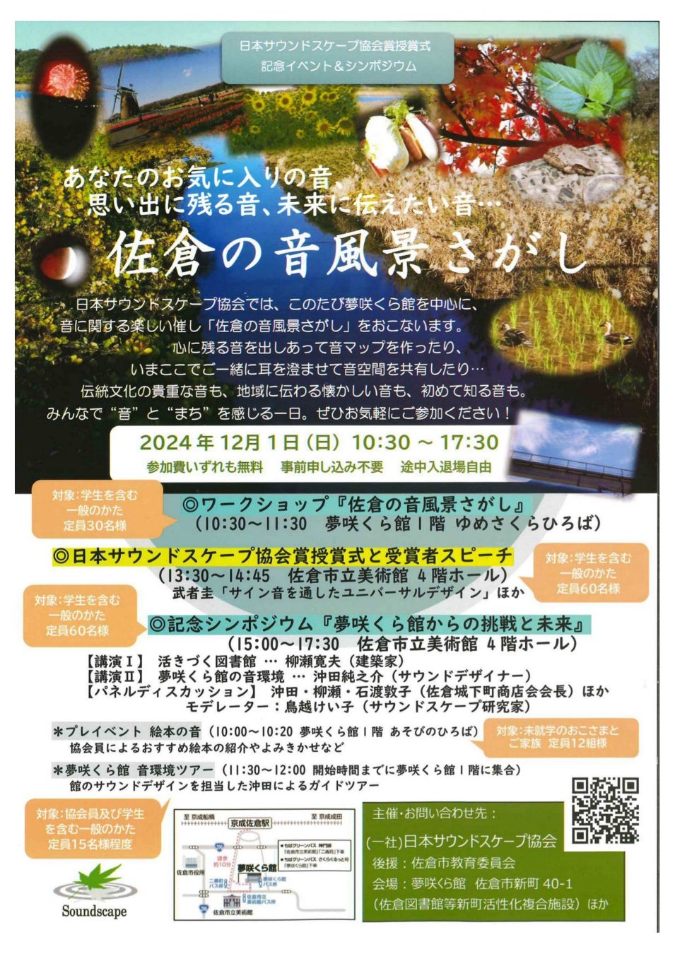 【千葉県佐倉市】佐倉の音風景を探してみませんか? 日本サウンドスケープ協会賞授賞式・記念イベント&シンポジウム開催(12/1)