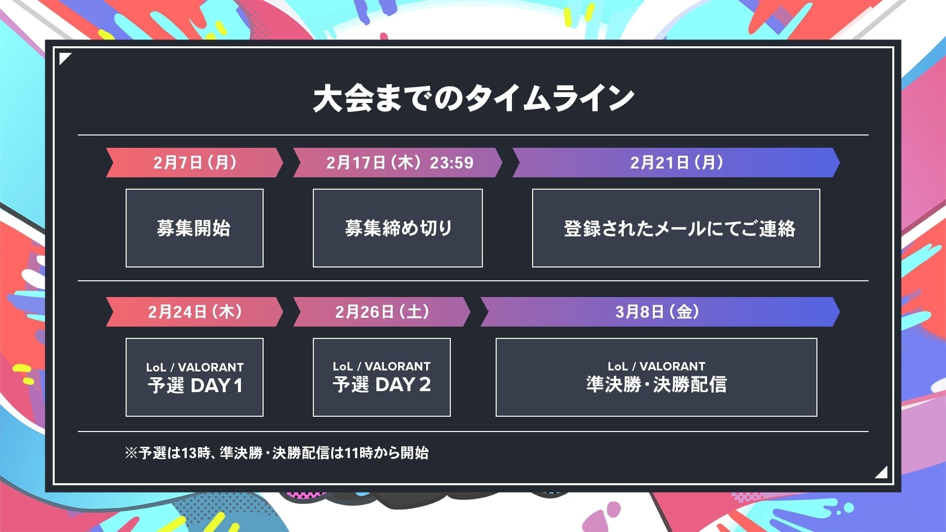 配信 :twitch.tv/leagueuofficial (配信は準決勝、決勝のみ)