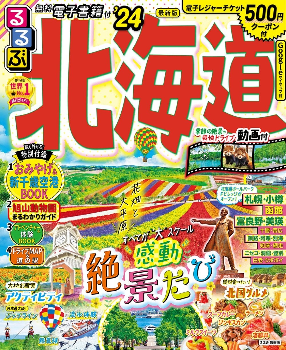 (上から)「るるぶ北海道‘24」「るるぶハワイ‘24」「るるぶ宇宙」