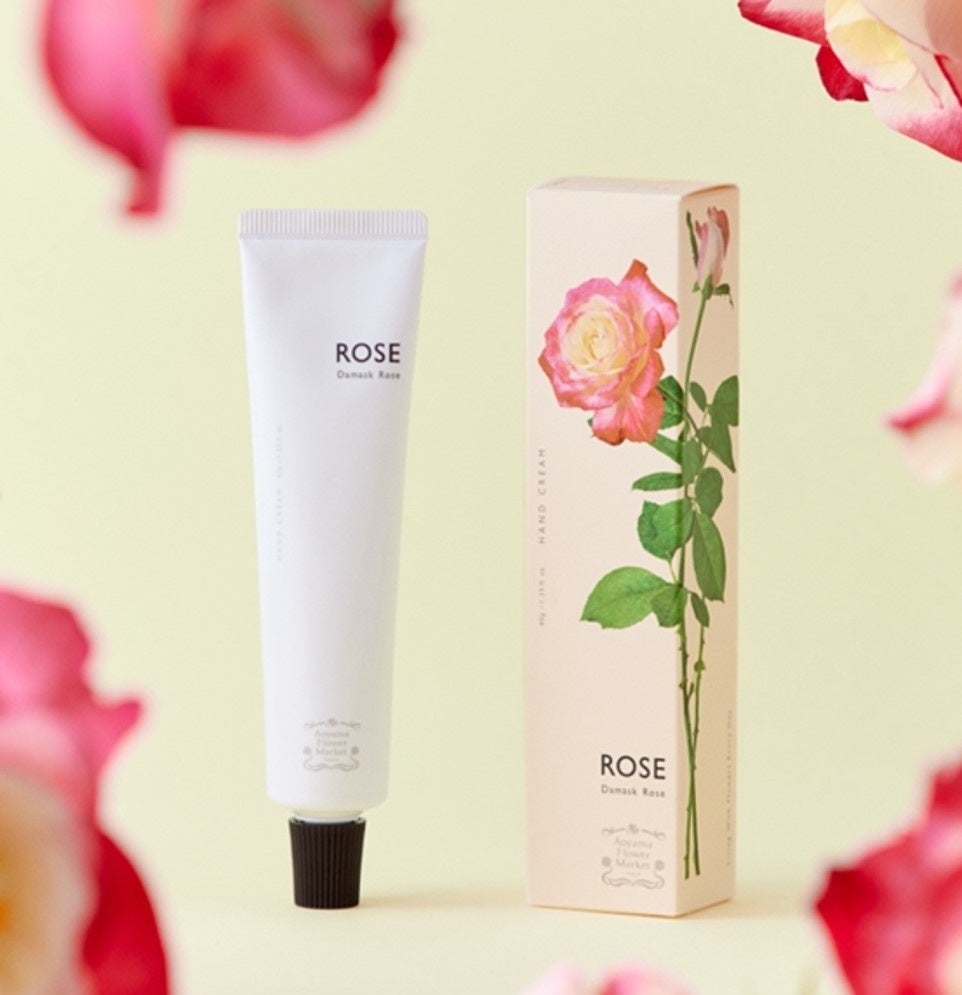 青山フラワーマーケットは、「花と緑に囲まれた心ゆたかなライフスタイル」を提案しており、単に花を販売することだけにとどまらない、花があることで実現する豊かな生活や安らぎを提供していきたいと考えています。日々の過酷な水仕事から、一年中、手荒れとは切っても切れない花屋が作るハンドクリームであることが開発の条件として提示されました。また、本当のバラが持つチカラを知る専門家であるがゆえに、天然であること、自然のチカラを活かすことが求められました。当社は1996年に社団法人大阪工研協会からバラの研究で工業技術賞を受けるなど、約30年に渡りバラが持つ秘めたる力の研究を蓄積しており、所有するバラ園で複数のバラを栽培しオリジナル成分※2の開発を行っています。開発したハンドクリームは天然のバラのチカラをふんだんに活かしたもので、国内で珍しい国産の生バラのオリジナル成分※2は、手肌を保湿することはもちろん、天然の野ばら油※1とともにフレッシュな香りを立たせ、香料を入れていないにも関わらず、天然のバラの本来の香りを楽しむことができ、まるで傍にバラが咲いているような安らぎを覚えます。また、無香料だけでなく、無着色・無エチルアルコール・無タール系色素・無パラベンで、可能な限り不要なものを省いた設計です。みずみずしく肌にすーっとなじむテクスチャーは、水仕事が多い時でも、べたつくことなく潤いで手肌を守ります。