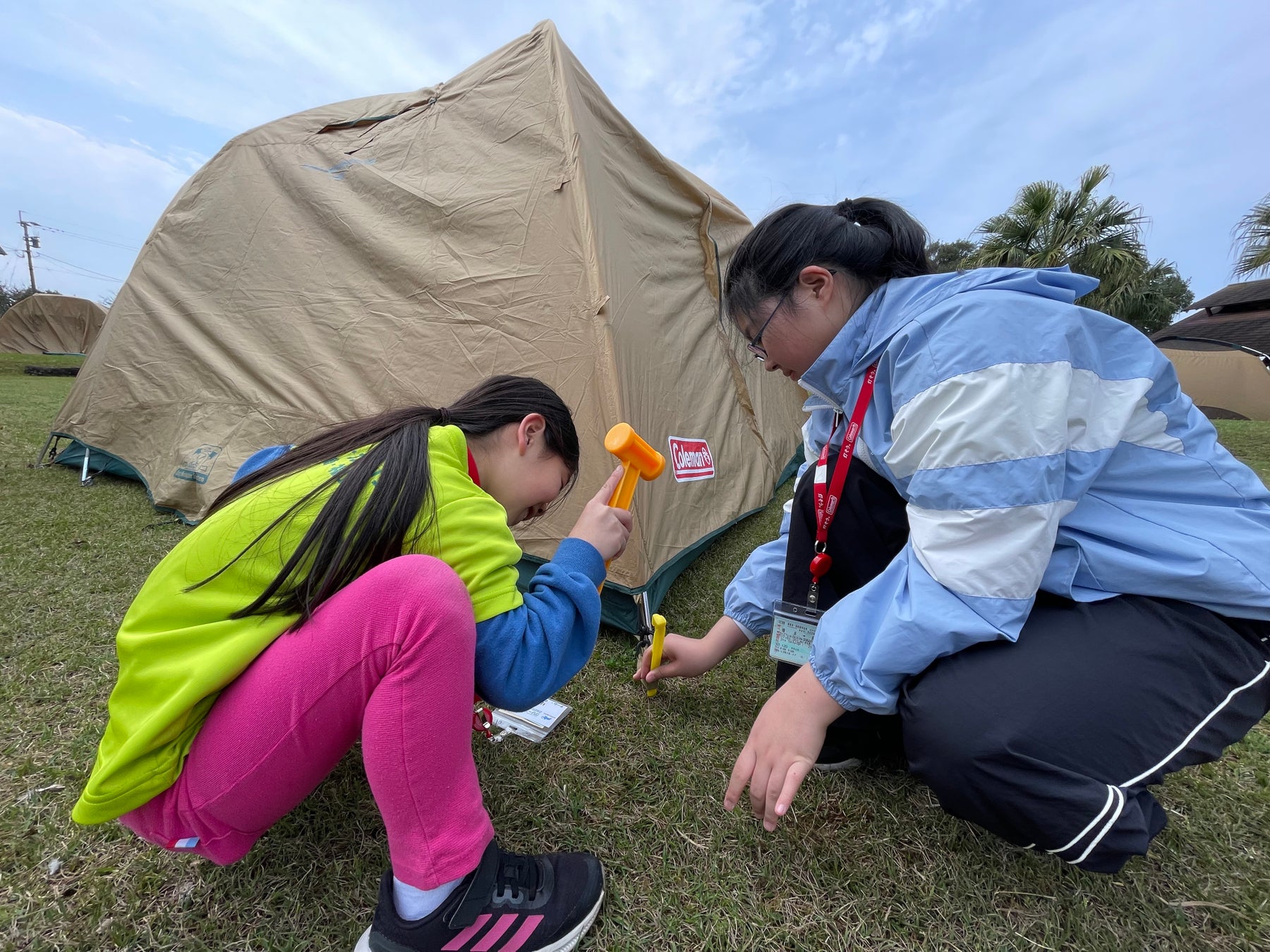 子供たちは福江島のキャンプ場に滞在し、仲間と協力してテントの設営を行い、食事の準備にも取り組みました。魚の捌き体験では「食」をテーマとした学びを深め、ジャクリのプログラムおよび大塚製薬のプログラムを通じて、再生可能エネルギーや水分補給の大切さについても学習しました。