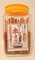 串カツ田中秘伝のオリジナルソースを使用した、ソースを主役として味わえるカツの駄菓子です。パン粉のサクサク感が楽しめる、ジューシーなソースカツに仕上げました。食べやすい串カツタイプで手に取りやすく、おやつだけでなくおつまみとしても召し上がれます。ほんのりスパイシーな味付けでお酒のお供にもぴったりです。