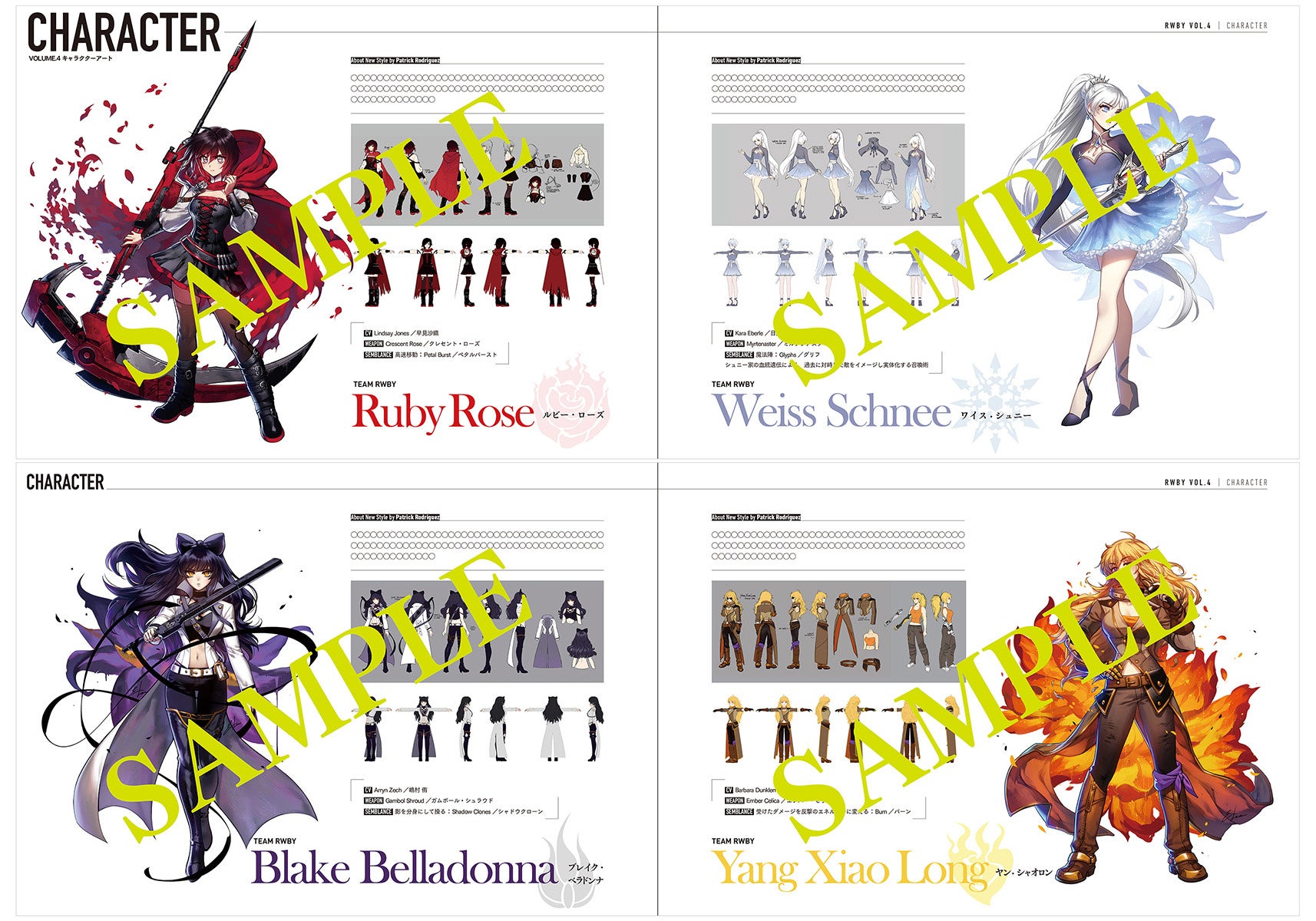 ▲「RWBY ARCHIVES 〜REMNANT PROMENADE VOLUME 1-8〜」サンプルページ