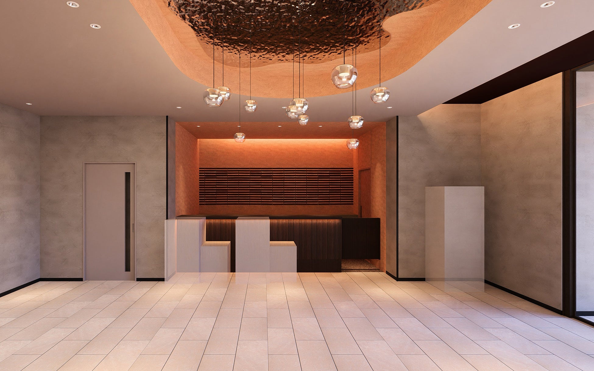 館内には「たたら製鉄」や「石州瓦」など、雲南の文化を彷彿させるモチーフを取り入れながら、出雲の民芸である「藍染」や「組子細工」を感じる装飾を随所に用いています。