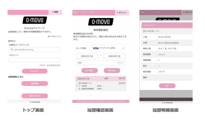 交通事業者向け決済及び認証のプラットフォームを提供する QUADRAC の Q-move サイト( https://q-move.info/ )にアクセスいただき、「マイページ」の会員登録手続きの後ご覧いただけます。