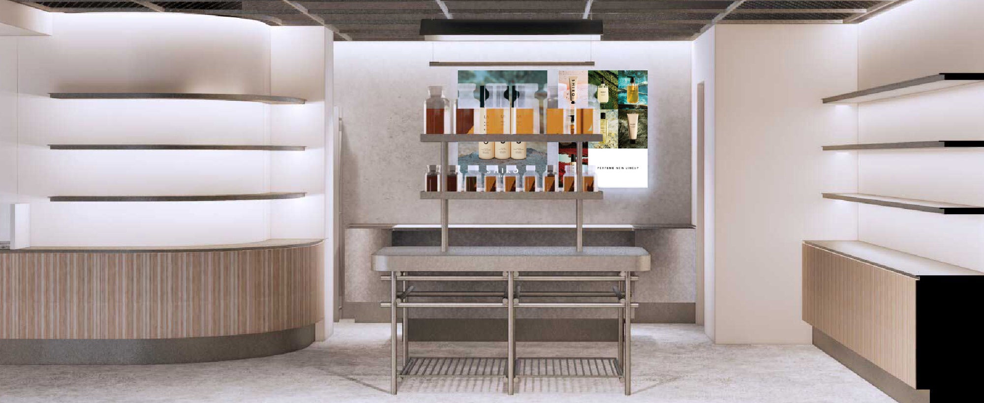 私たちは2024年から廃棄物ゼロを目指し、ものづくりとお店づくりに取り組んでいます。香港のお店では、廃棄されるはずだった香料を使って、北海道砂川市にある「みんなの工場」の研究開発室をイメージした空間で、まるで調香師のようにフレグランスの調合体験ができる、「ゼロブレンダーラボ」が登場します。