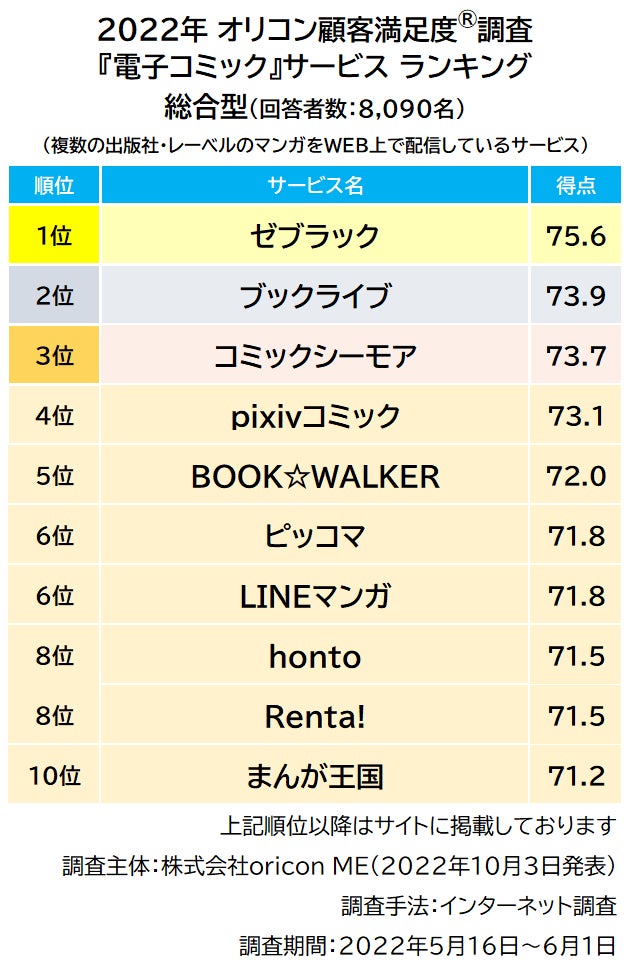 《調査概要》 2022年 オリコン顧客満足度®調査 電子コミックサービス