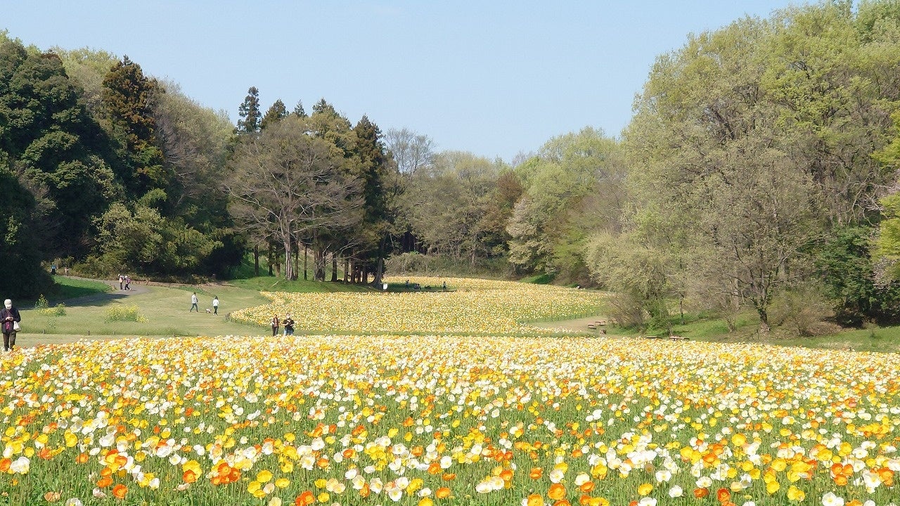 埼玉県比企郡に位置し、東京ドーム65個分もの広さを誇る国営武蔵丘陵森林公園では、約70万本の「アイスランドポピー」の花畑(約8,000m²)が、まもなく最盛期を迎えます。