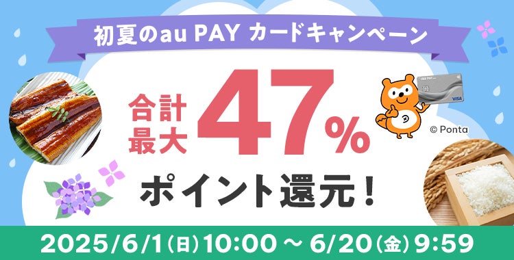 auコマース&ライフとauフィナンシャルサービスは、2025年6月1日から6月20日までの期間、KDDIが運営する「au PAY ふるさと納税」において、「初夏のau PAY カードキャンペーン(以下、本キャンペーン)」を開催します。
