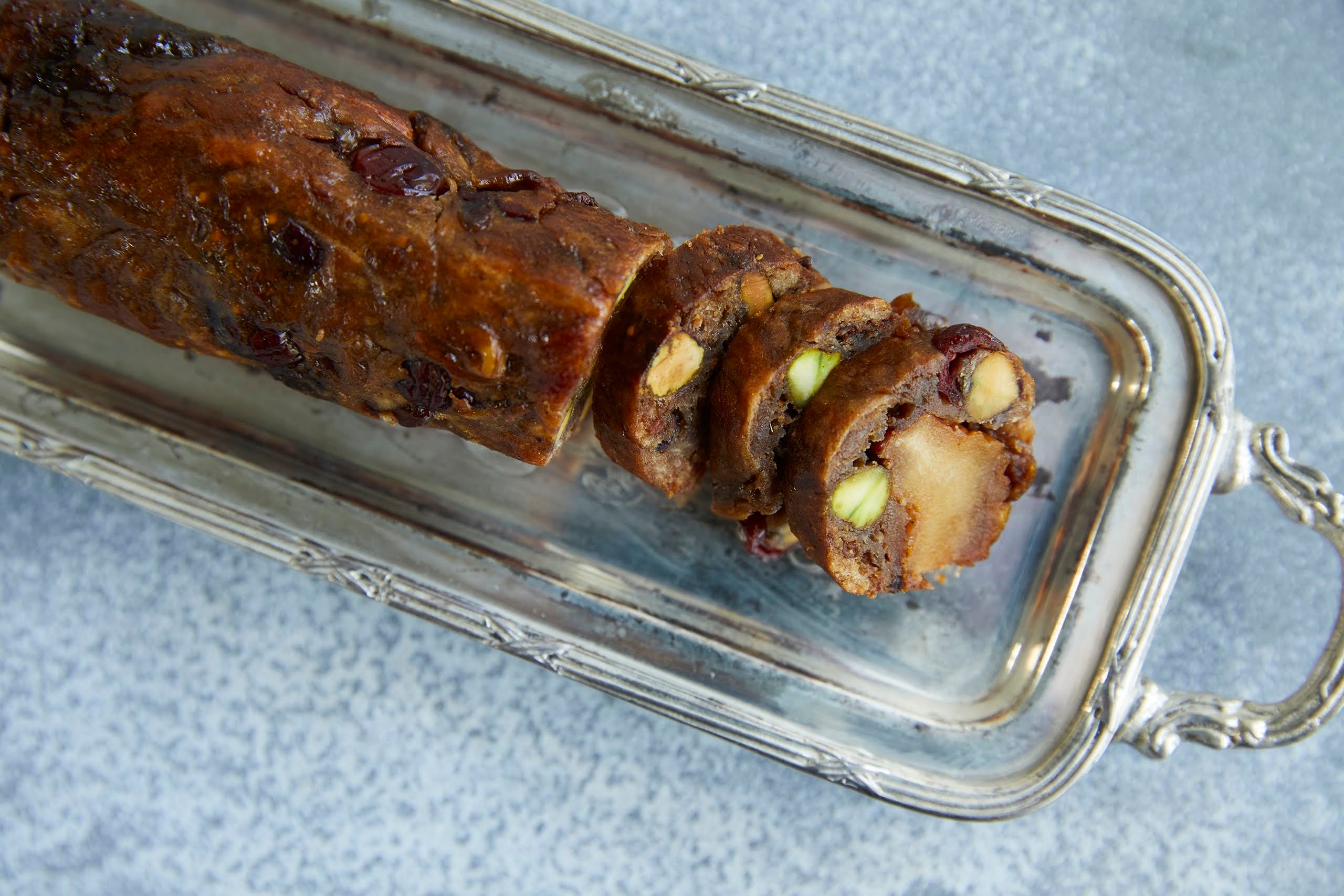 ライ麦入りの生地に、アカシアの蜂蜜とスパイス類を加えたシンプルなホリデー菓子。フランス北部のレシピをもとに、バターとミルクを加えてしっとり焼き上げました。「スパイスのパン」という名の通り、シナモン、ジンジャー、クローブ、スターアニスなどのスパイスと、蜂蜜が織りなす優雅な香りが口の中に広がります。レーズンとセミドライのプルーンも加えて、よりリッチに。スライスしてそのまま、またチーズやレバーペーストと共に召し上がるのもおすすめ。
