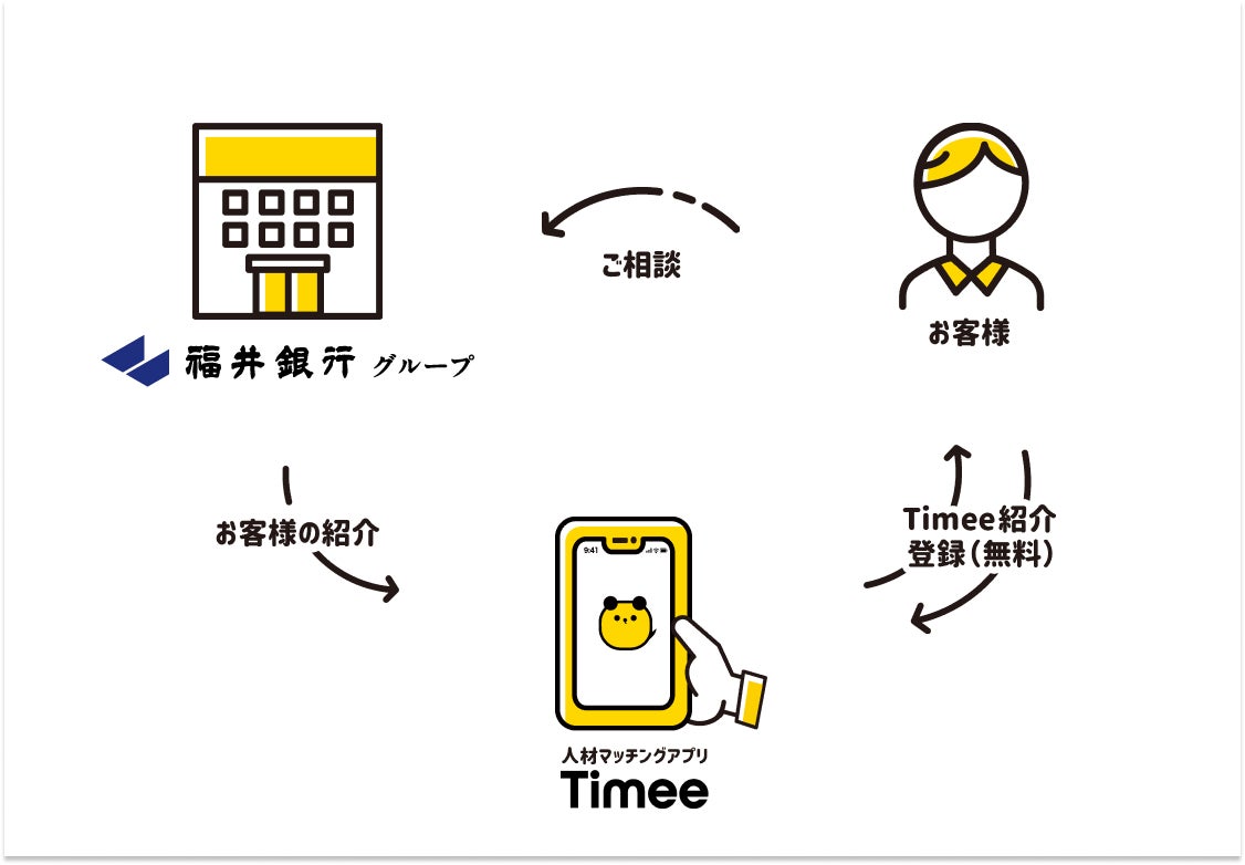 本提携では、福井銀行のグループ会社の人材支援企業である福井キャリアマネジメントが、お取引のある地域のお客様に対して、タイミーを活用した上で突発性を伴う人員ニーズへの柔軟な対応、及びその後の長期的な採用のための活用を提案、支援してまいります。そして、地域企業の継続的な成長をサポートし、エリアの経済活性化に資する事を目指します。