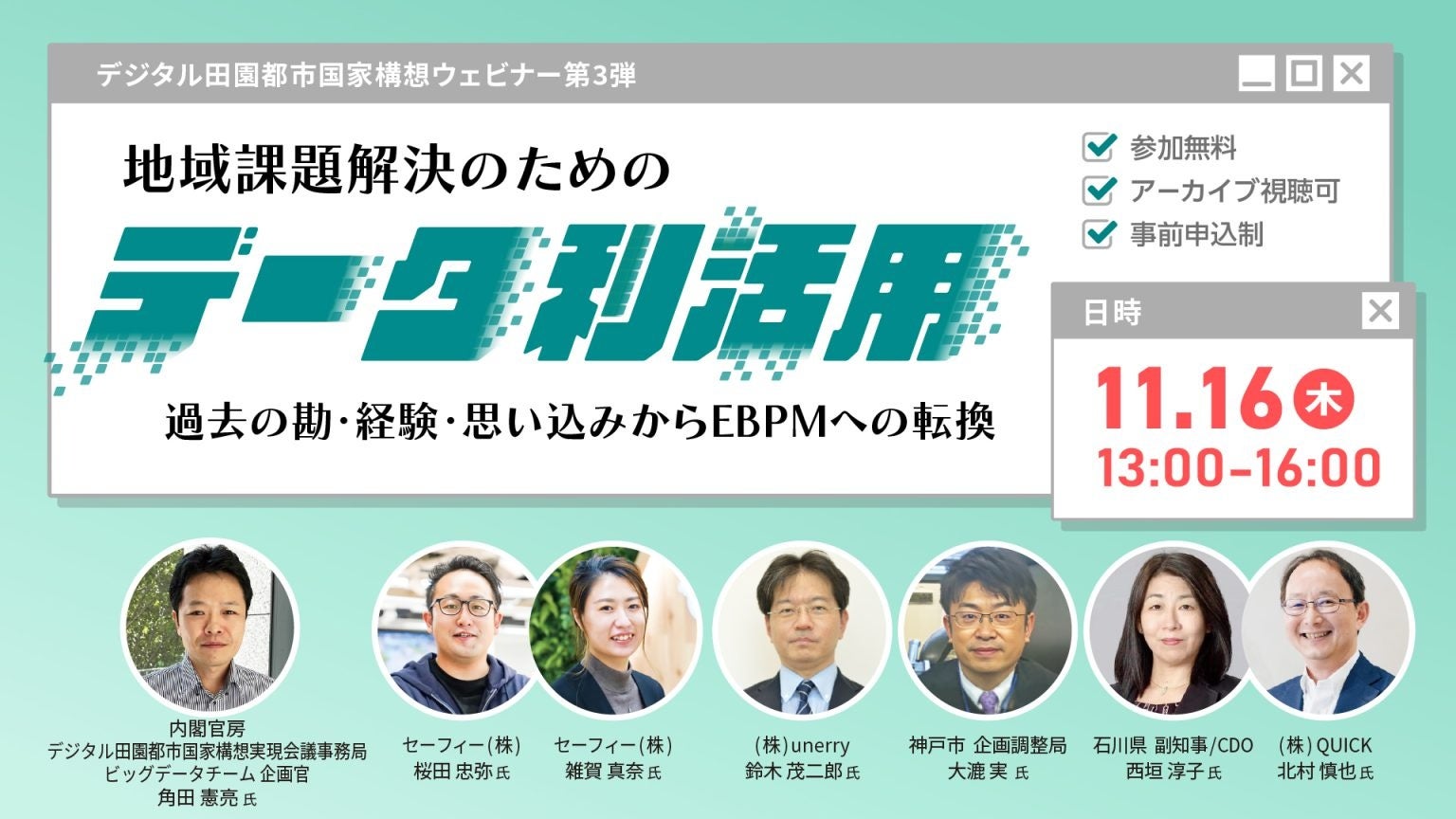 デジタル⽥園都市国家構想ウェビナー第3弾 内閣官房ビッグデータチーム、石川県副知事兼CDO、神戸市など登壇