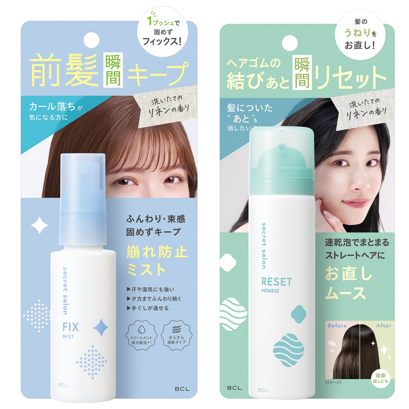 株式会社スタイリングライフ・ホールディングス BCLカンパニー(本社:東京都新宿区、カンパニーエグゼクティブ プレジデント:大村和重)は、「シークレットサロン バングフィクサー リネンの香り <ヘアスタイリング料> 45mL 1,320円(税込)」「シークレットサロン スタイルリセットムース リネンの香り <ヘアスタイリング料> 55g 1,320円(税込)」を5月13日に数量限定で発売いたします。