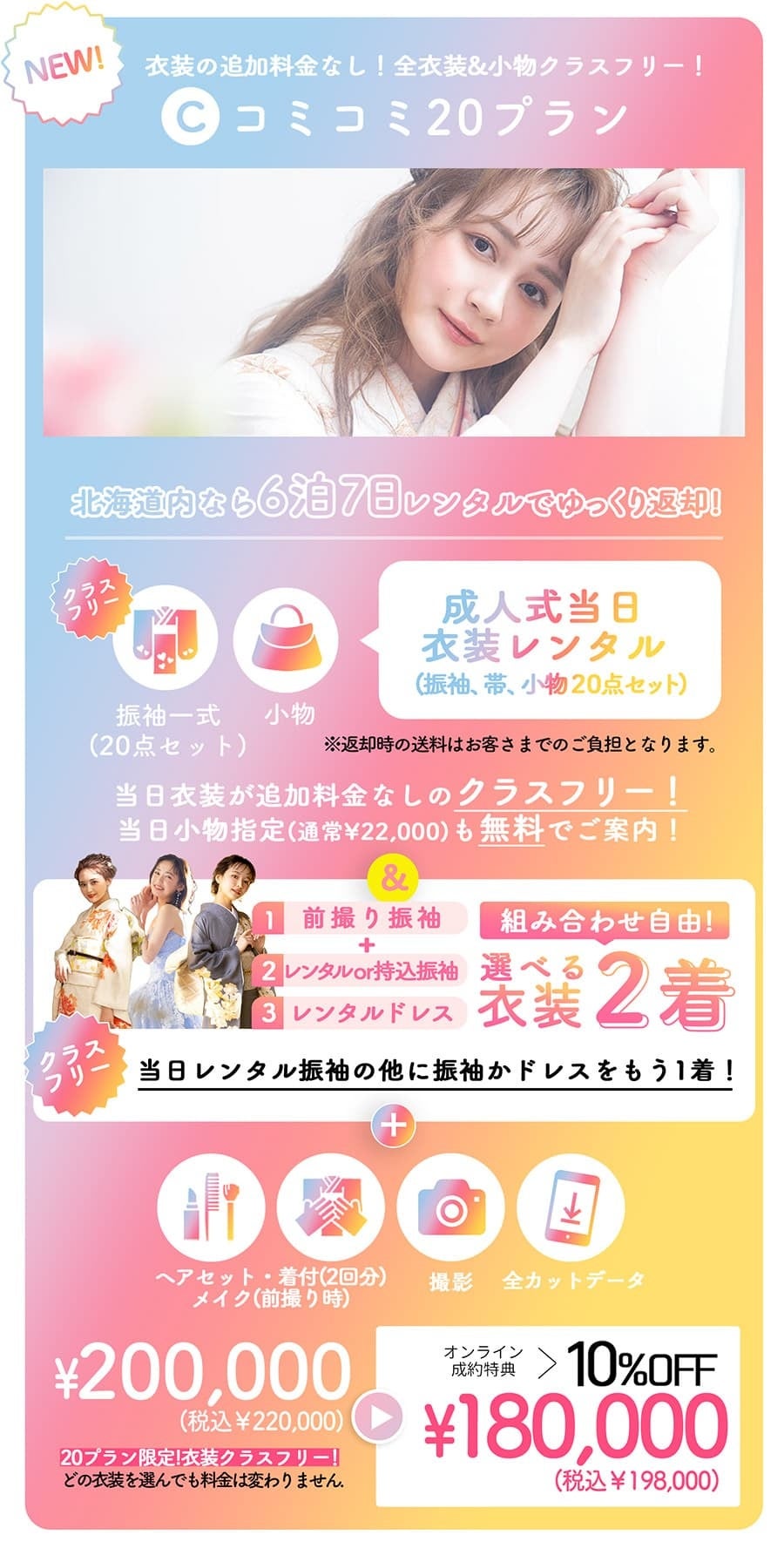 2023年,2024年度の新成人対象!当日振袖レンタルが含まれた「コミコミ20プラン」が登場!