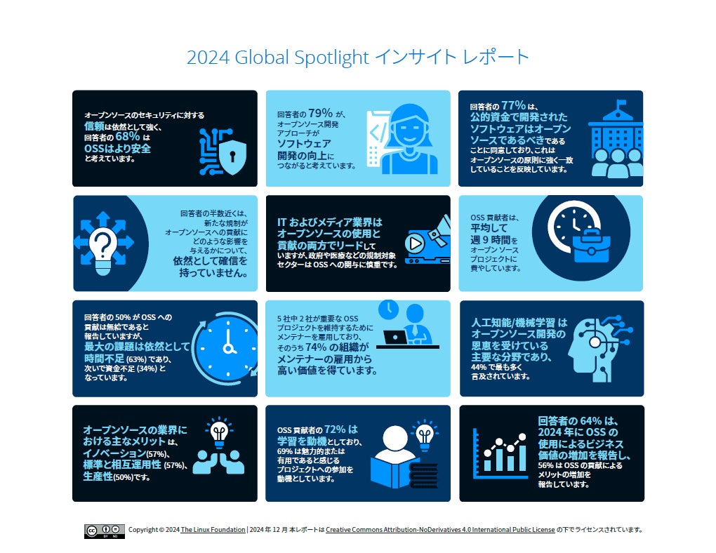 Linux Foundation Research (LF Research) による調査レポート「2024 Global Spotlight Insights Report」の日本語版「2024 Global Spotlight インサイト レポート」が公開されました。