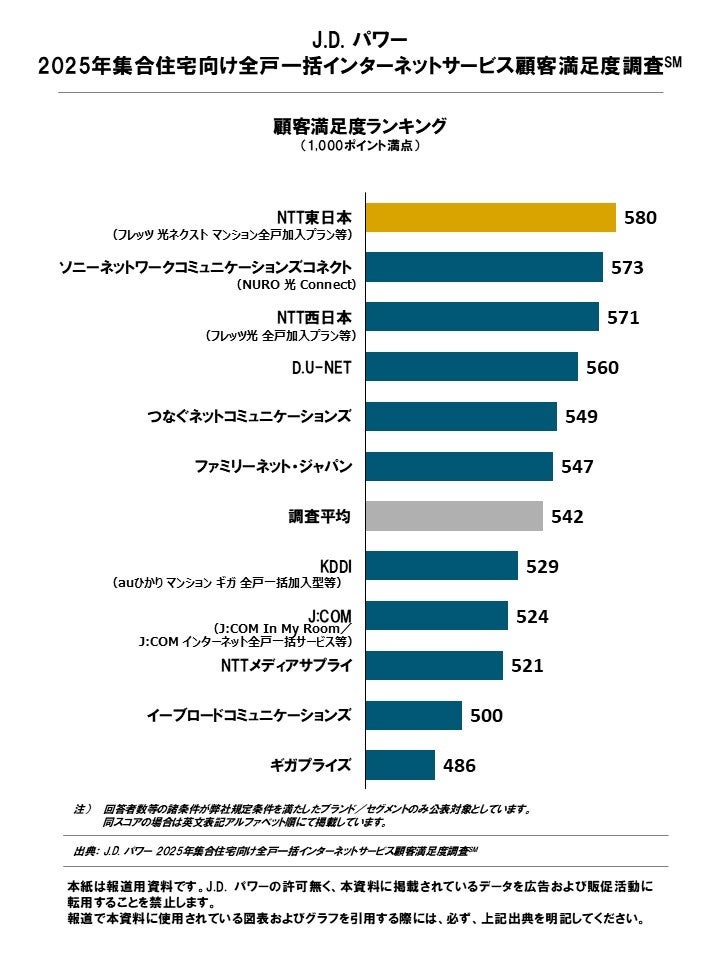 J.D. パワー 2025年集合住宅向け全戸一括インターネットサービス顧客満足度No.1を発表