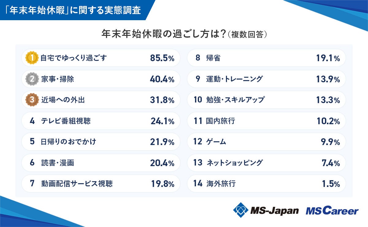 ・年末年始休暇の過ごし方 第1位は「自宅でゆっくり過ごす(85.5%)」