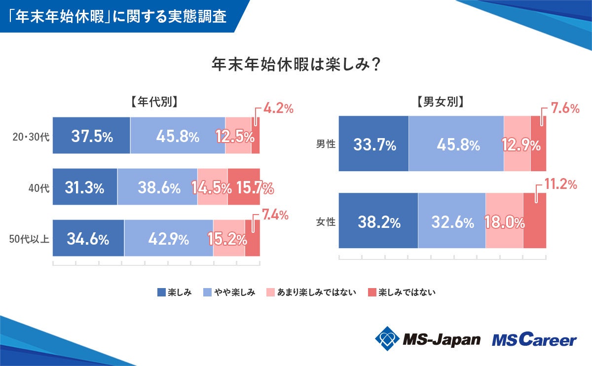 MS-Japanが「年末年始休暇」の実態を調査。会社員の「64%」が9連休以上取得も、「2割」は「楽しみでない」と回答