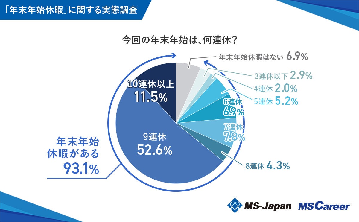 また、93.1%が「年末年始休暇がある」と回答した一方、6.9%が「年末年始休暇はない」ことが明らかになりました。