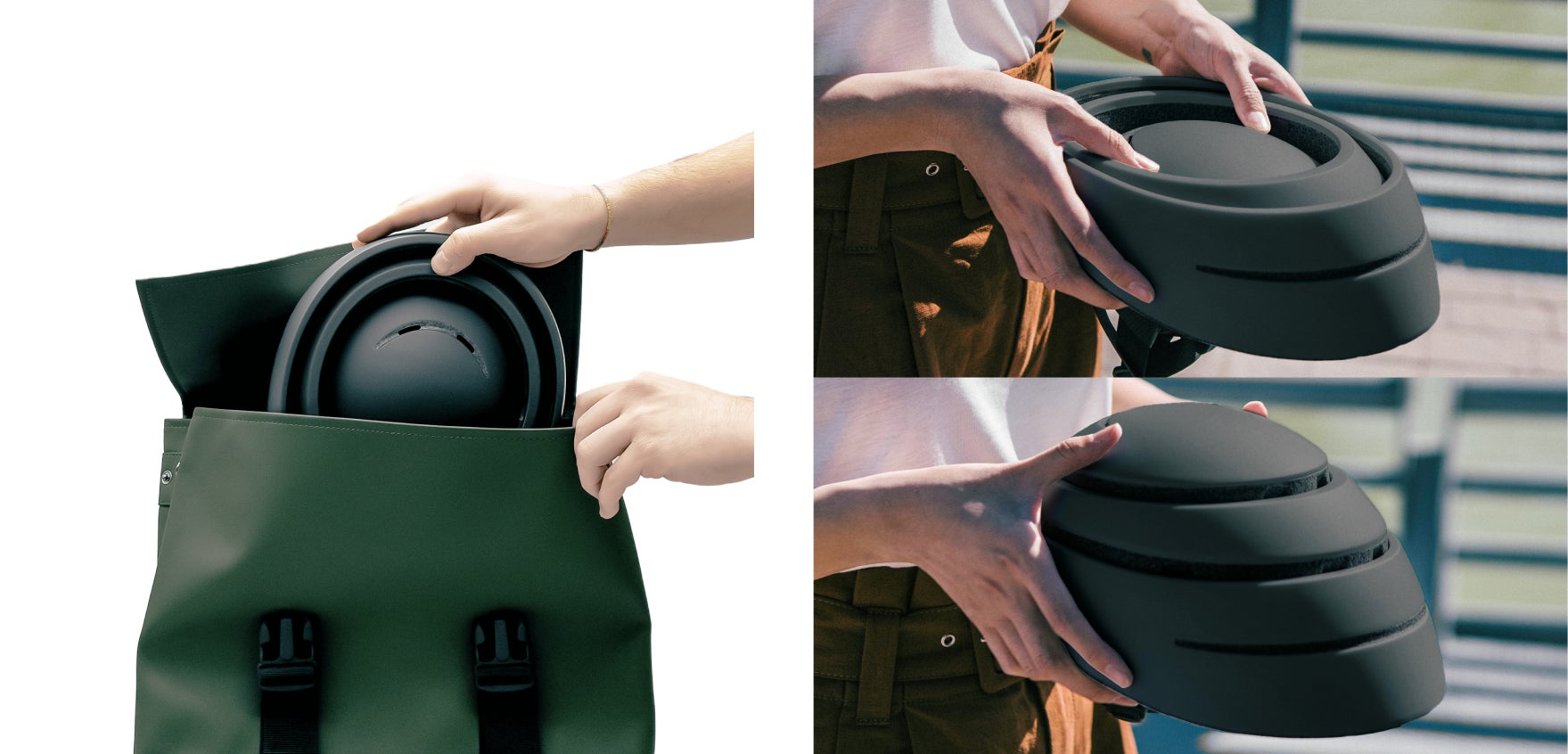 LUUPがスペイン発のコンテンポラリーデザインブランド「Closca」とコラボしたヘルメットは、特許取得済みの仕組みを採用しており、ヘルメット内の容積がなくなった時のみ折りたたむことができます。この革新的な構造により、万が一の事故の際に生じる衝撃から頭部を保護します。また、折りたたんでコンパクトになることで気軽に持ち運ぶことができ、通勤や街乗りに最適です。
