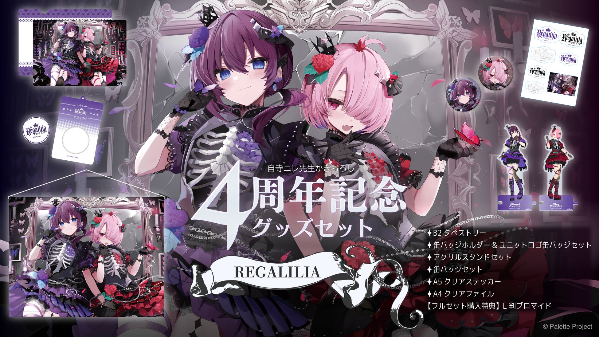 「REGALILIA」4周年を記念したオリジナルグッズの販売を開始いたしました。販売期間は、2024年7月9日(火)23時59分までとなります。ぜひお買い求めくださいませ。