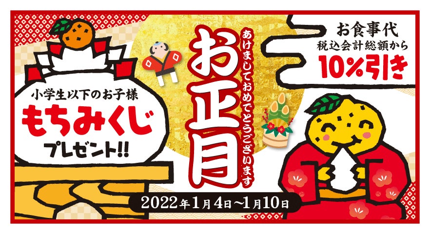 株式会社物語コーポレーション(本社:愛知県豊橋市/代表取締役社長:加藤 央之)は、全国92店舗展開する『寿司・しゃぶしゃぶ ゆず庵』(以下、ゆず庵)で、2022年1月4日(火)~1月10日(月祝)まで、小学生以下のお子さまにお菓子を、アプリ会員さまには限定お食事クーポンをプレゼントする「ステキな日本をゆず庵で〜お正月〜」キャンペーンを開催いたします。