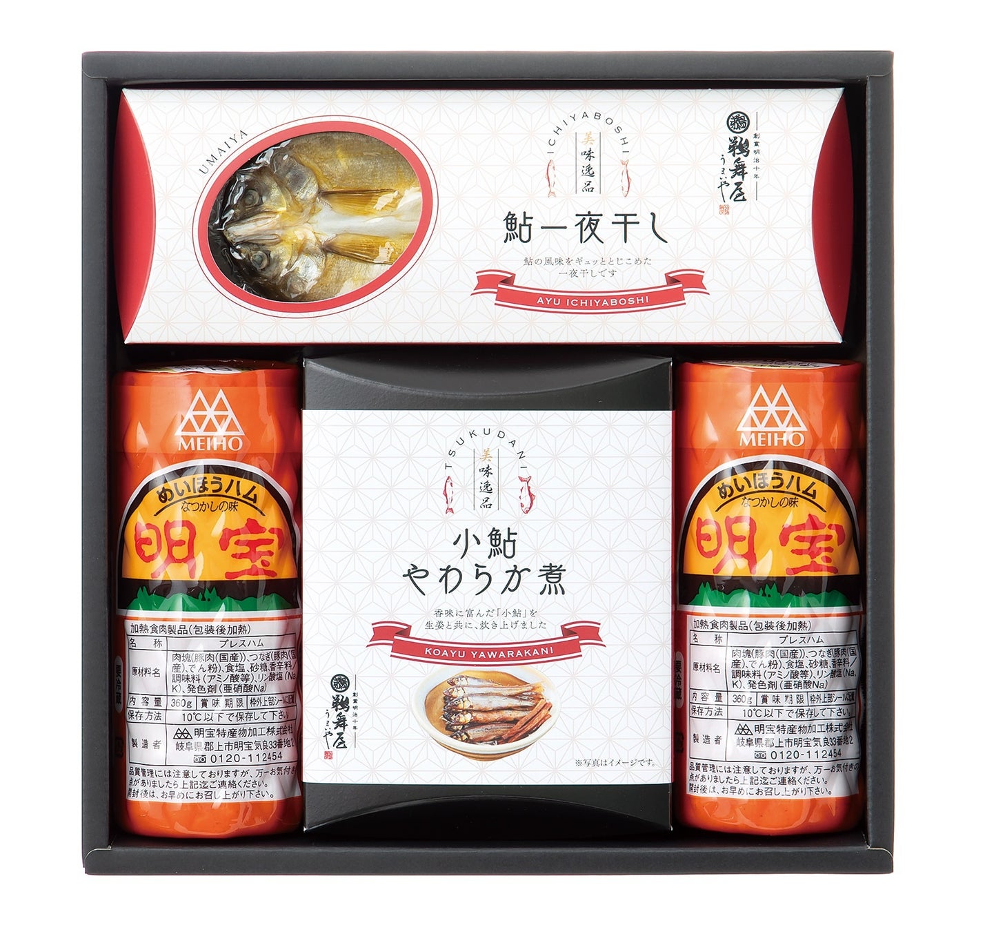 岐阜髙島屋で人気だった小鮎のやわらか煮と、鮎の一夜干し・明宝ハムが味わえる詰め合わせを復刻販売。