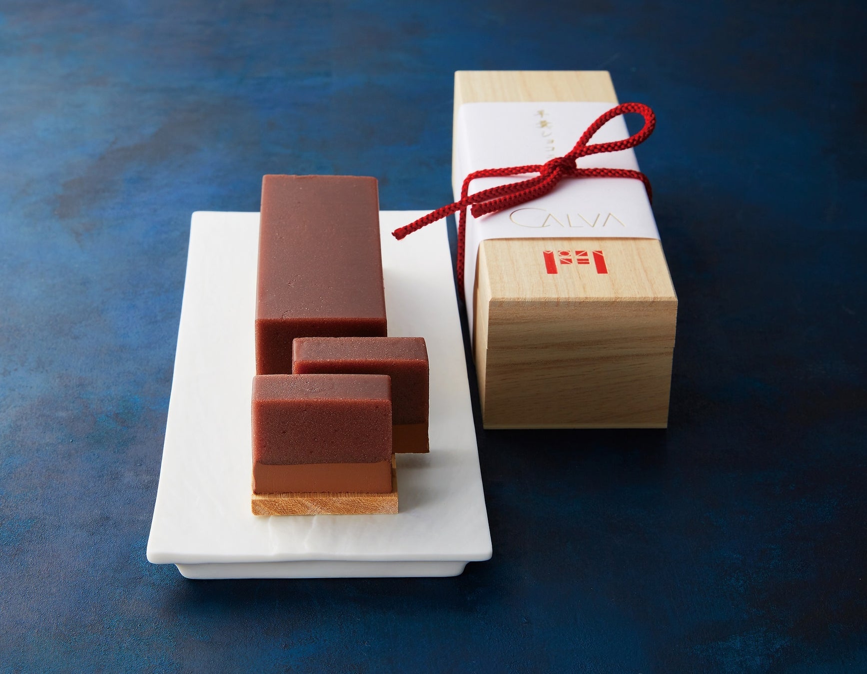 蒸し羊羹の食感にチョコレートガナッシュを合わせた和と洋の融合スウィーツ。