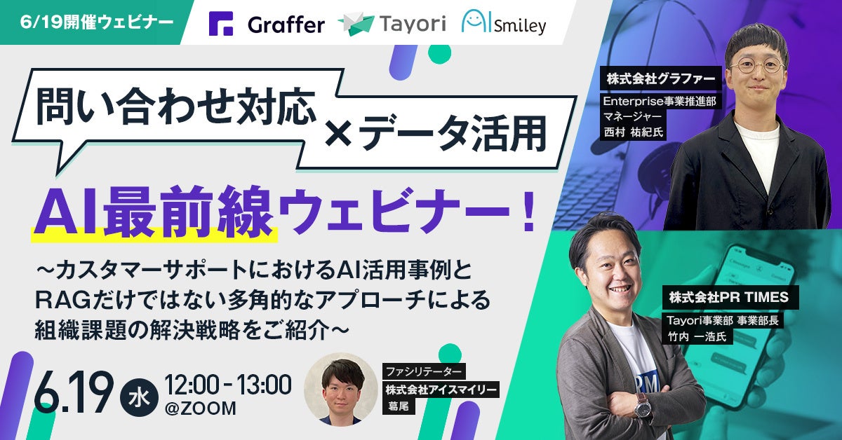 AIポータルメディアAIsmileyは、2024年6月19日(水)12時から特別企画として問い合わせ対応×データ活用をテーマとしたAI最前線ウェビナーを開催します。
