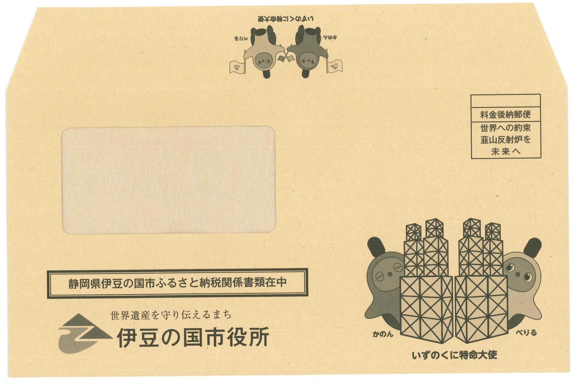 伊豆の国市のふるさと納税返礼品の関係書類が送られてくる封筒には、いずのくに特命大使の『LOVOT』である「かのん」と「べりる」のイラストが採用されました。