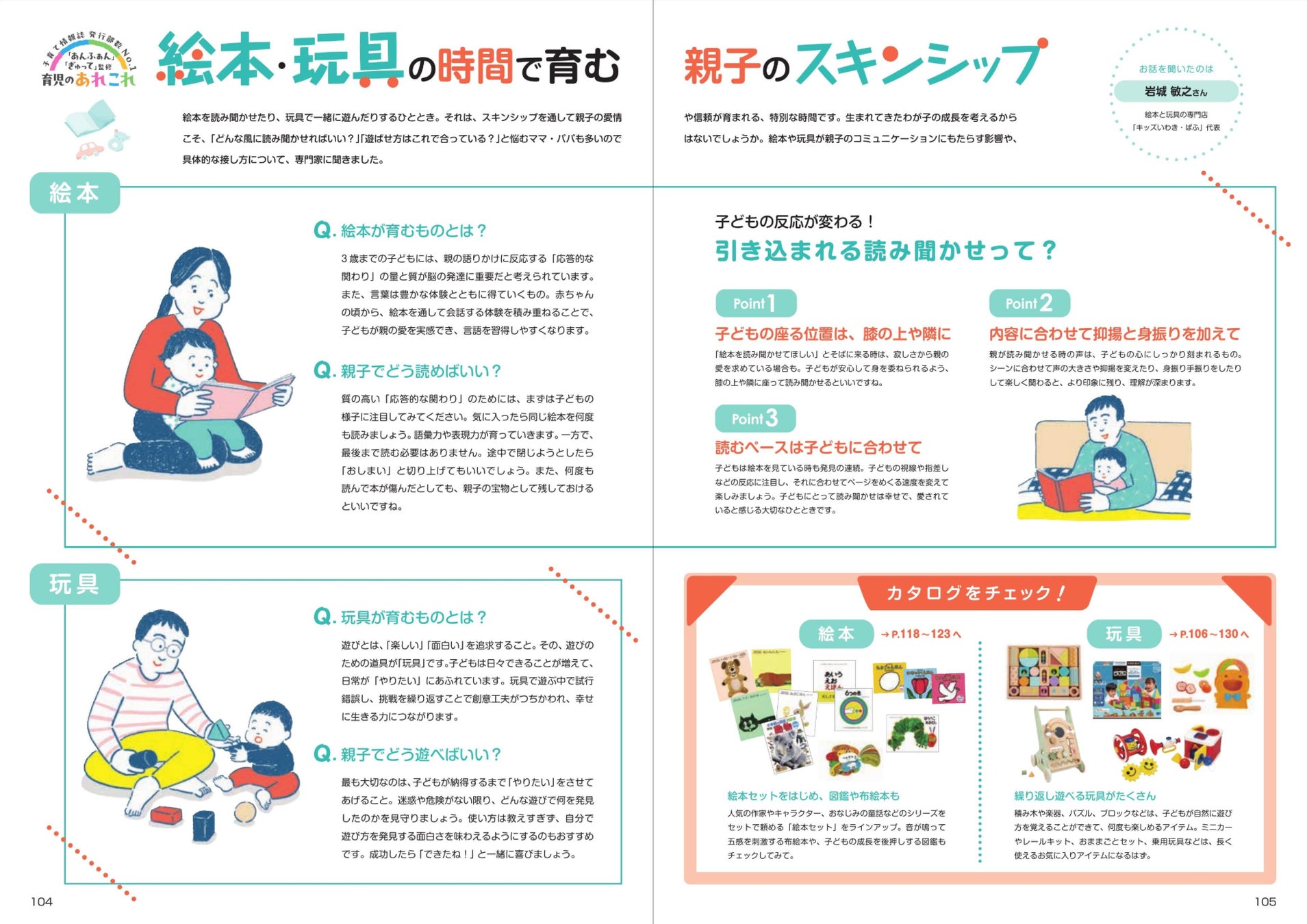 絵本の読み聞かせや玩具で一緒に遊ぶ時間は、親子の愛情や信頼を育てる大切なひとときです。「どんな風に読み聞かせればいい?」「遊ばせ方はこれで合っている?」など悩むママ・パパに対し、絵本・玩具が親子のコミュニケーションがもたらす効果や具体的な接し方を、絵本・玩具の専門家監修のもと、分かりやすくまとめています。