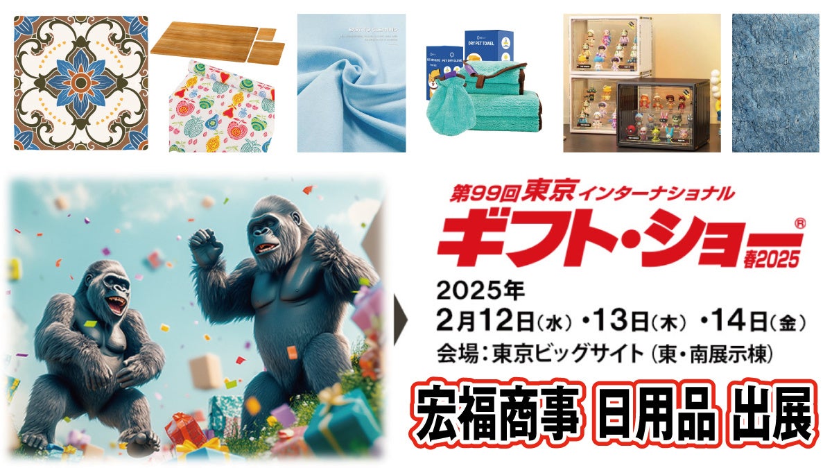 宏福商事合同会社(東京都荒川区)は、2025年2月12日から14日に東京ビッグサイトで開催された「第99回東京インターナショナル ギフトショー2025」(主催:ビジネスガイド社)に出展し、当社の運営サイト「Kofuku Trading」で取り扱う日用品・雑貨を披露いたしましたので、お知らせいたします。