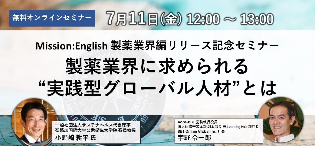 このたびのリリースを記念し、教材の監修者である小野崎耕平氏を迎えて、製薬業界における人材育成の課題と、これからの実践型グローバル人材像を考える無料オンラインセミナーを開催いたします。