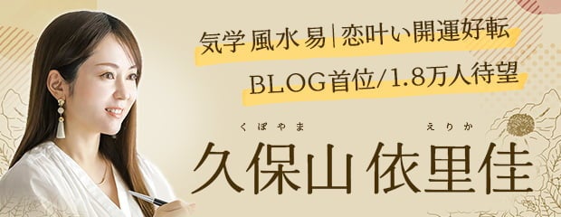 ブログトップの実績(※)誇る鑑定士「久保山依里佳」。“想い”を成就に結び付ける『気学風水』と、この世の万事を知る『易』。本人実証の超開運鑑定で運気の上昇を約束。あなたの人生や恋愛に確実な結果と成果を出します。※2023年1月時点Amebaブログランキング