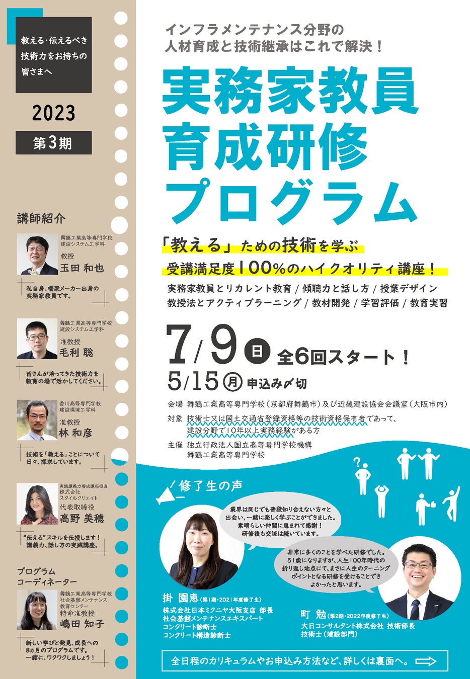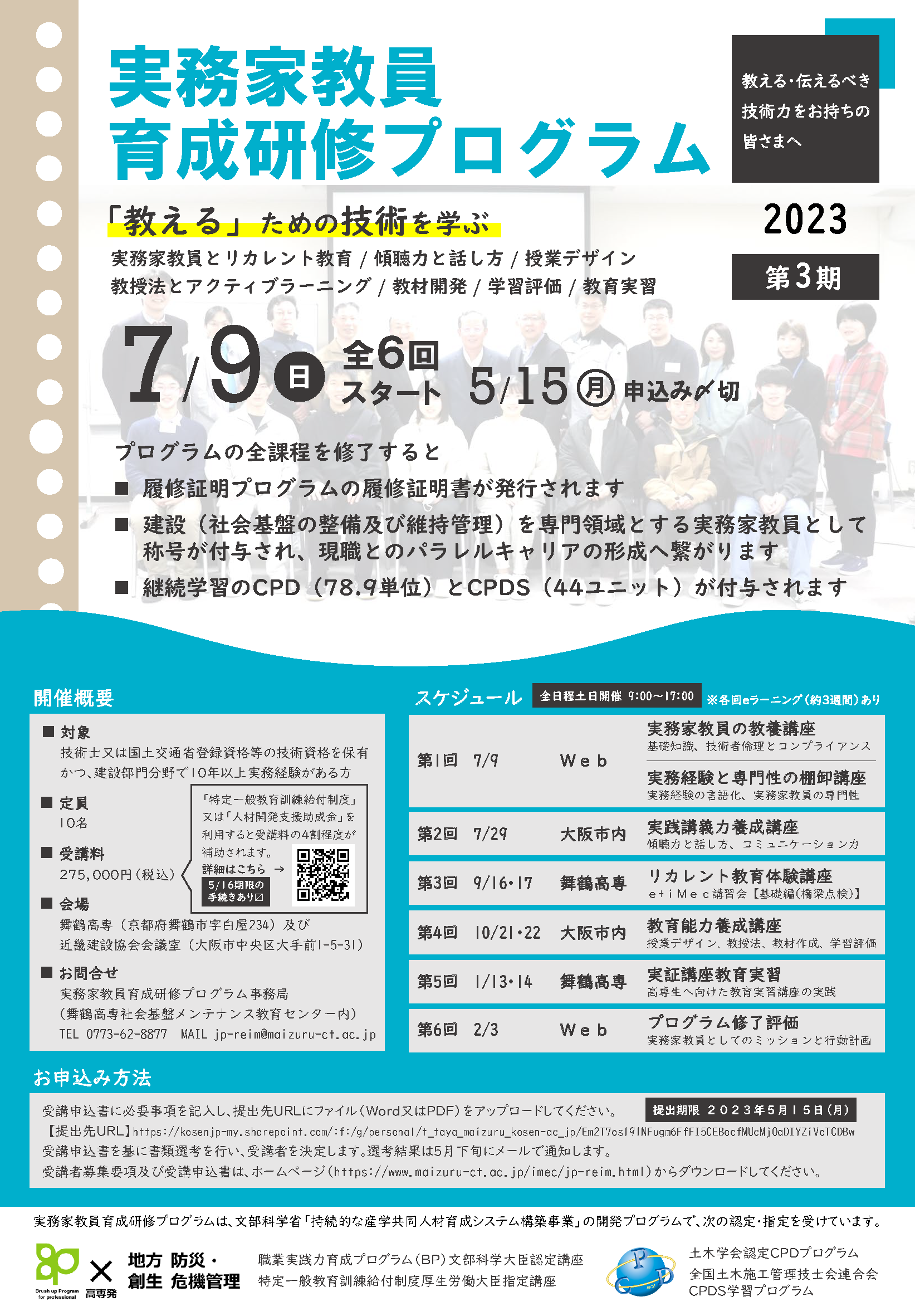 【舞鶴高専】「実務家教員育成研修プログラム」2023年度受講者募集!