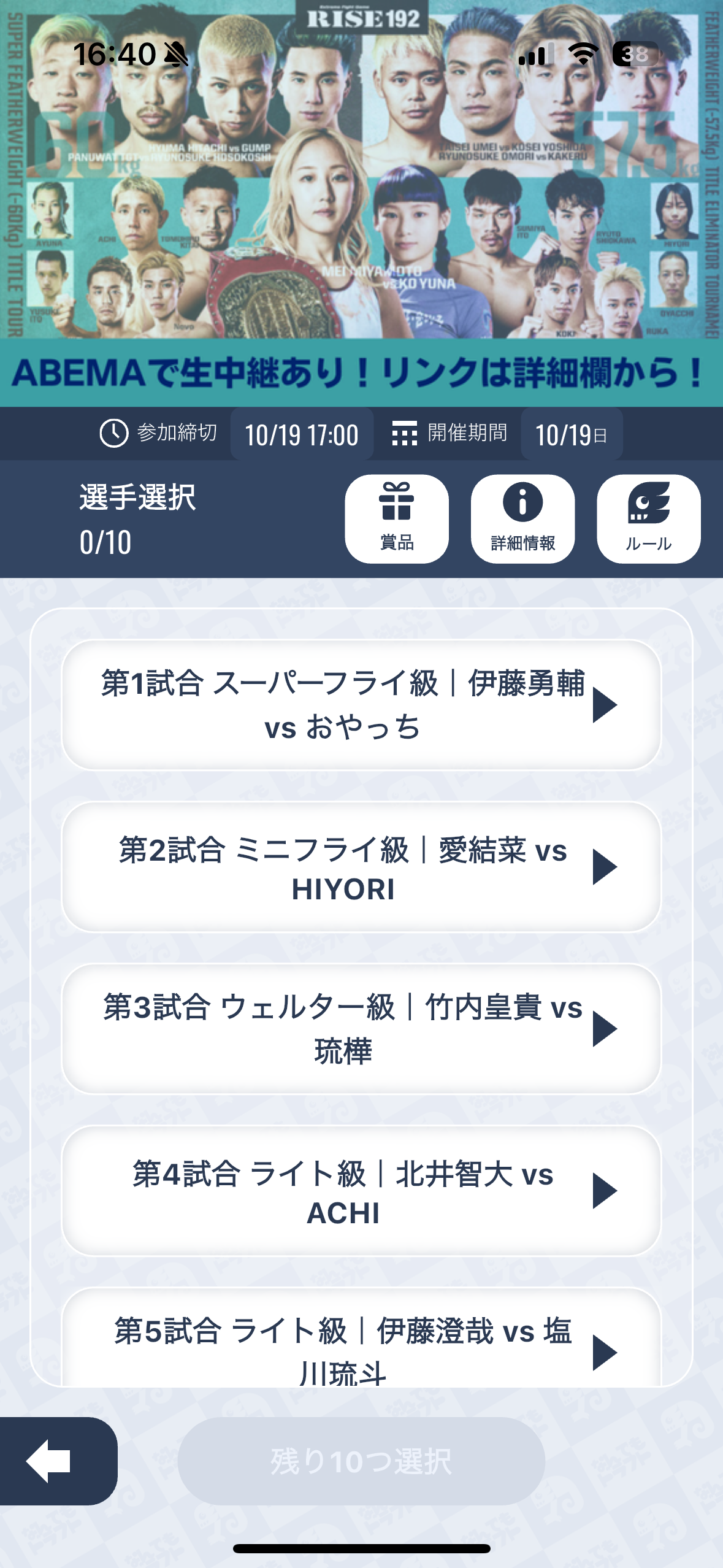 なんドラでは、「RISE192」をより楽しんでいただくために、全10試合を対象に予想企画を開催中です!