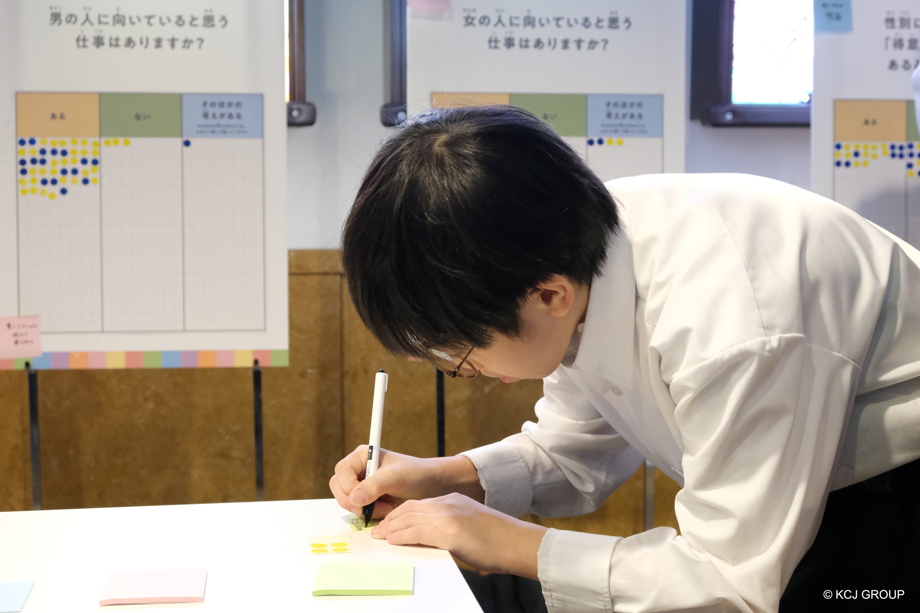 アンケートに参加したこどもからは、「(アンコンシャス・バイアスは)学校で習ったから知っていた」「去年キッザニアでアンコンシャス・バイアスについて知ったので、それから色々なことにチャレンジしている」などの声がありました。また保護者からは、「こどもと一緒に考えることができて嬉しい」「(アンコンシャス・バイアスは)聞いたことがなかったから、これを機にもっと知りたいと思った」などの声があったほか、こども達が付箋に自分の意見を書く姿を見て、「こう思っているんだ」とうなづきながら見ている方や、 こどもがアンコンシャス・バイアスを知っていて、驚いている方もいました。