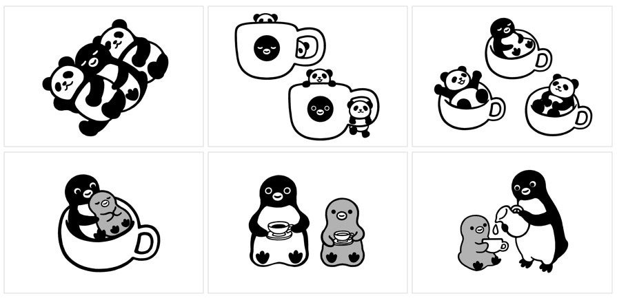 好評のパンダとのコラボデザインが3種、ひそかに人気の高い子ペンギンとのデザインが3種。どのデザインも『Suicaのペンギン×ハミングカフェ バイ プレミィ・コロミィ』のイメージにぴったりのかわいらしいデザインです。このデザインを使った商品は『Suicaのペンギン×ハミングカフェ バイ プレミィ・コロミィ』および隣接する「プレミィ・コロミィエキュート上野店」から、順次展開していきます。お楽しみに!