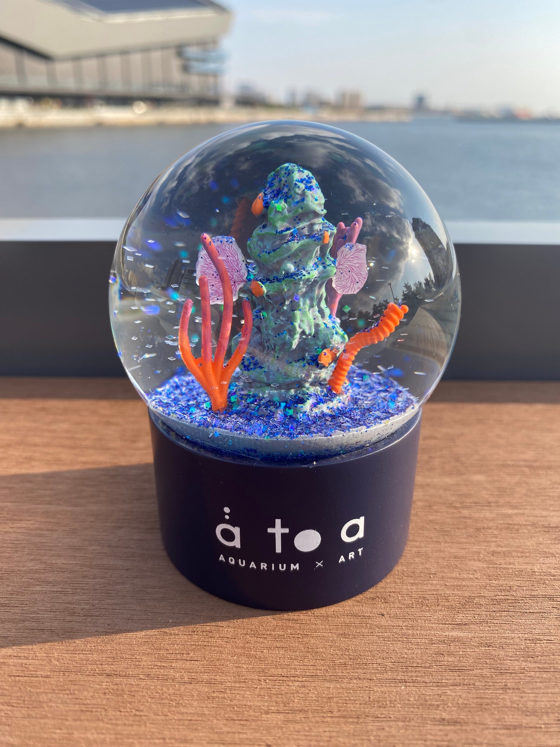 国内最大級の球体水槽“AQUA TERRA”がそのまま小さな世界に閉じ込められたような、ここでしか手に入らない特別なアイテムです。アトアで過ごした楽しいひとときを思い出させてくれる、記念やギフトにぴったりのスノードーム。手のひらサイズで場所を選ばず、玄関やデスク、リビングの一角で気軽にお楽しみいただけます。