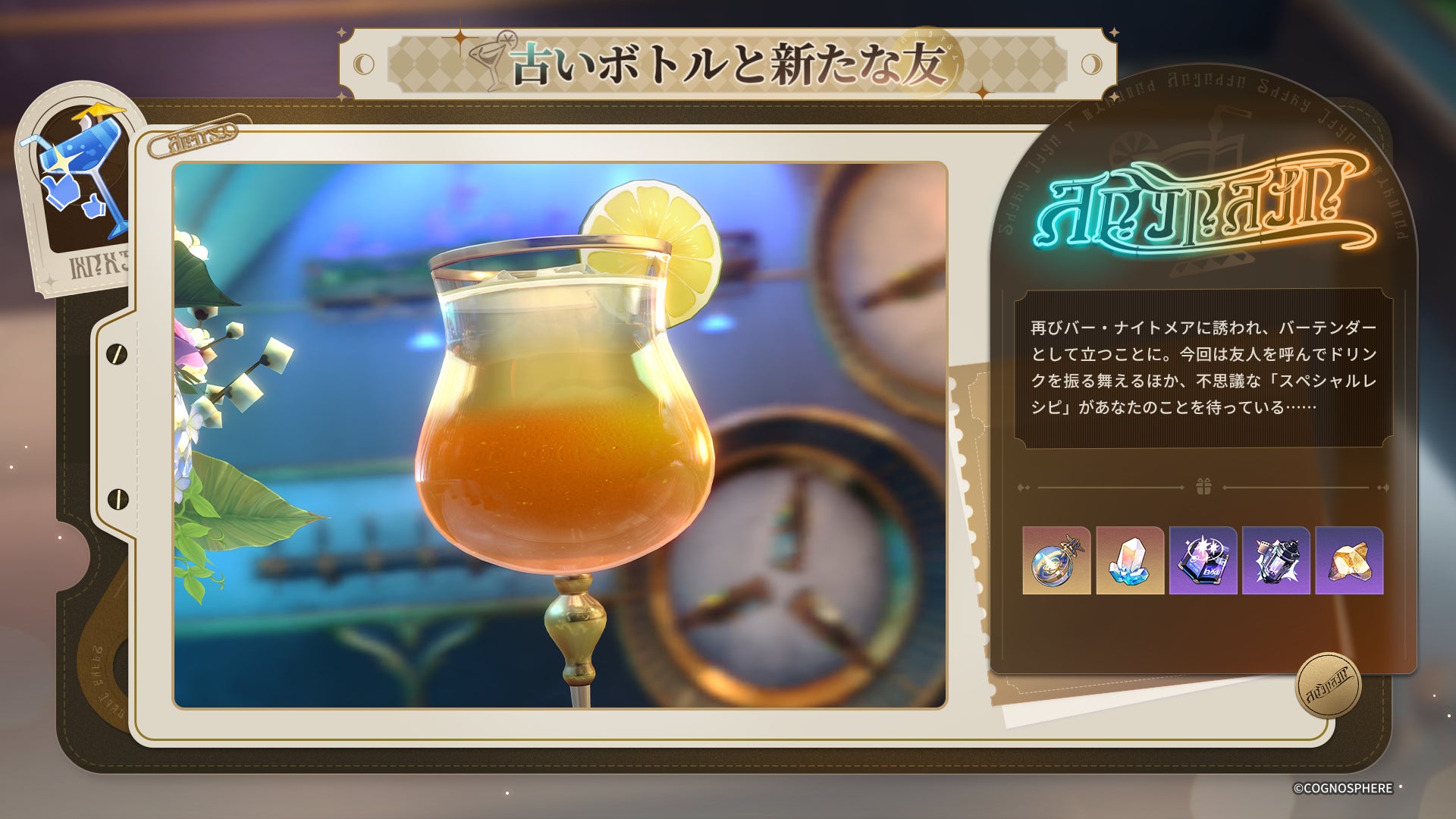 再びバー・ナイトメアに誘われ、バーテンダーとして立つことに。今回は友人を呼んでドリンクを振る舞えるほか、不思議な「スペシャルレシピ」があなたのことを待っています……