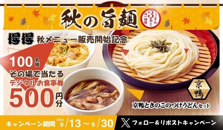 得得 秋メニュー販売開始記念「得得公式Xフォロー&リポストキャンペーン」を開催