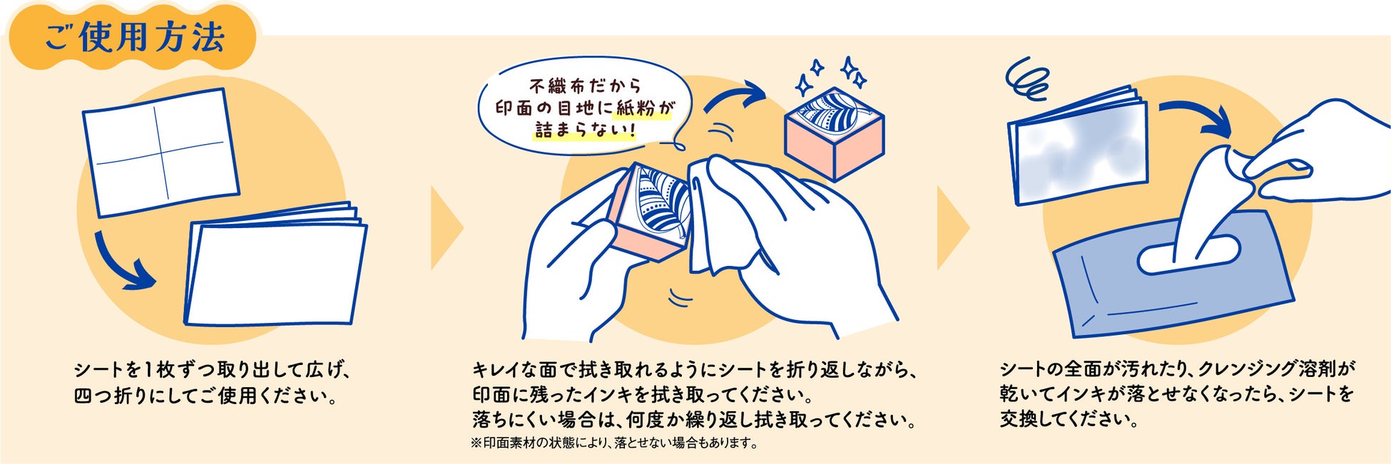 ・シートは不織布なので、印面の目地に紙粉が詰まることがありません。
