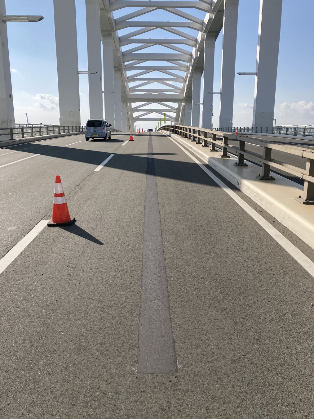 本実証実験は、Osaka Metroが2025年大阪・関西万博の来場者輸送に向けて、自動運転レベル4の認可取得を目的に行う公道実証実験です。大阪・関西万博で実際に走行予定の大型タイプのEVバスが「舞洲駐車場~万博会場」のコースを自動運転レベル2で走行し、自動運転レベル4の認可取得に向けた事前のリスクアセスメントに基づく検証を行います。走行コースに「夢洲」と「舞洲」をつなぐ夢舞大橋が含まれており、車両通過時のGPS精度の低下が課題となっていました。そこで、自動走行の安定化を目的に当社のターゲットライン®ペイントを橋梁上に導入しました。