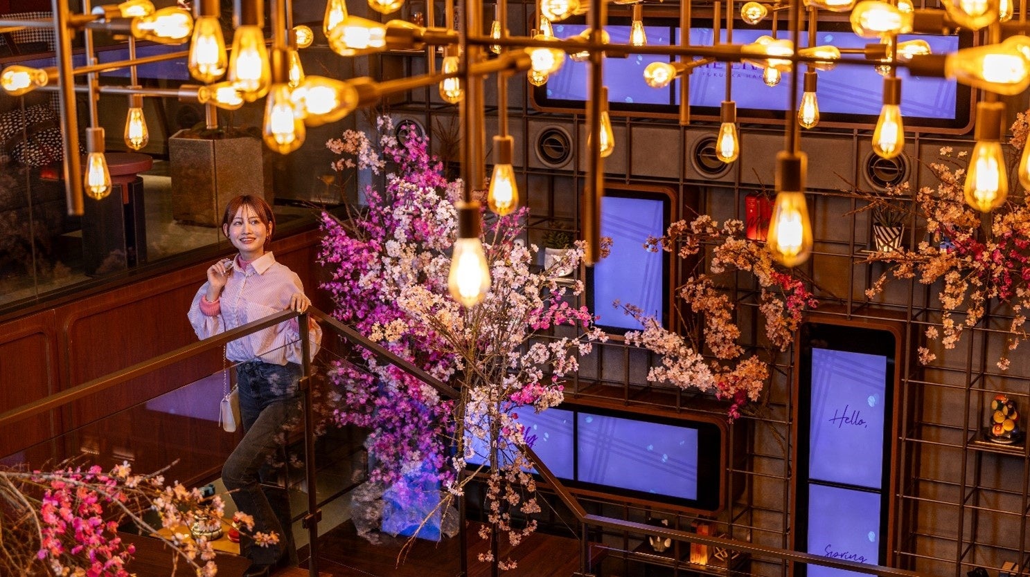 人気エリアのロビーラウンジでは館内で花見が楽しめるフラワーアートを用いた空間演出を実施いたします。階段には桜並木のアーチ、サイネージディスプレイにも桜のアートが舞います。また、2階には日本らしい春の風情を演出する野点傘を飾ったフォトスポットもご用意。ご家族やご友人と思い出の写真撮影をお楽しみいただけます。